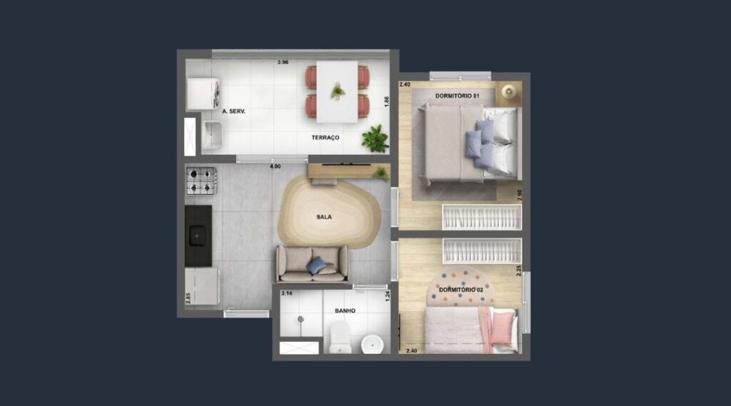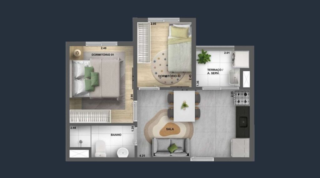 Brinquedoteca, Pet Care, Coworking, Lavanderia, Piscina Adulto e Infantil, Academia, Churrasqueira, Salão de Festas e Jogos.