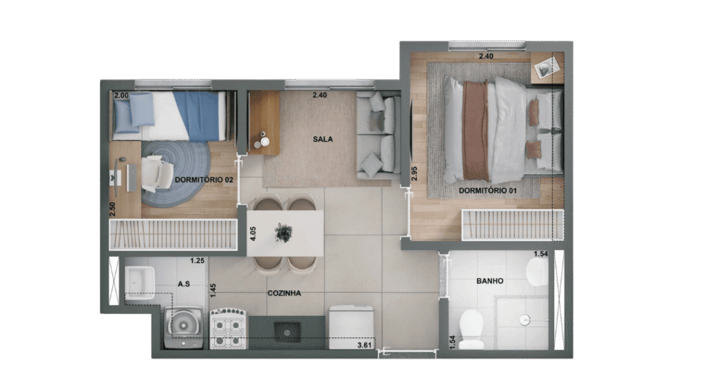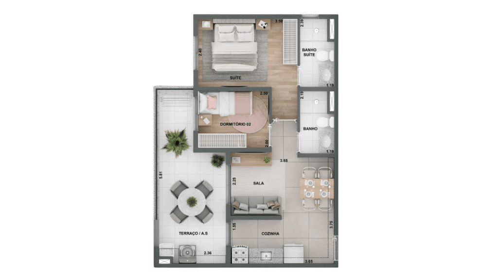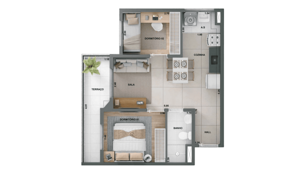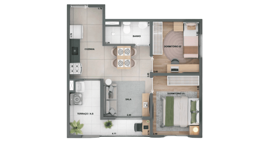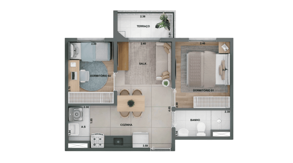 1 e 2 dormitórios com opção de suíte, terraço e vaga